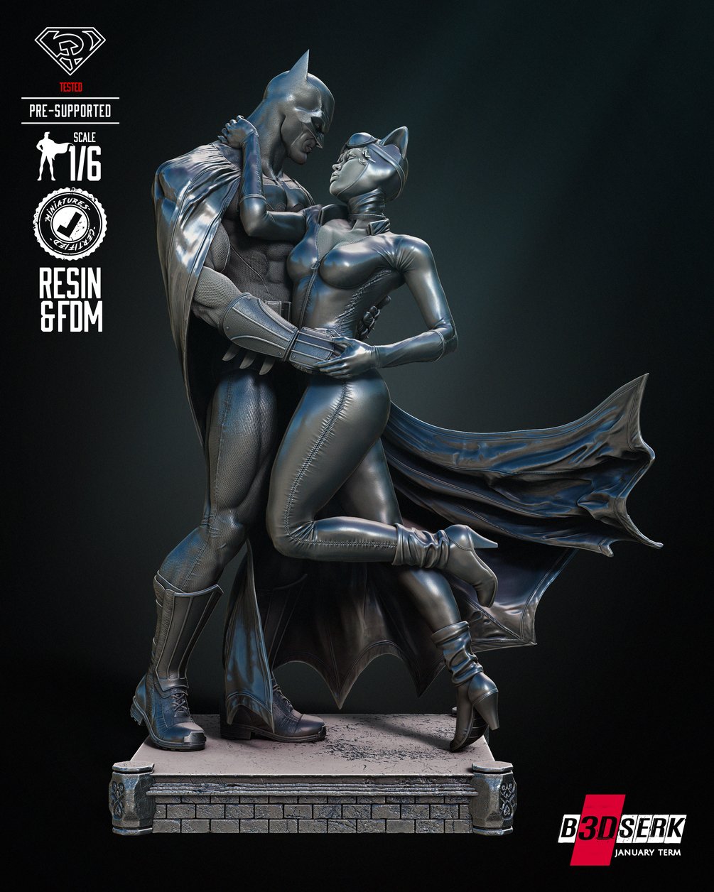 B3DSERK January term 2024: Batman and Catwoman Diorama ready for printing
