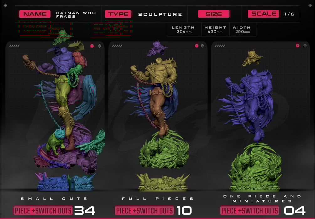 Batman Who Frags Sculpture: Non Supported, Pre - Supported and One Pieces version.