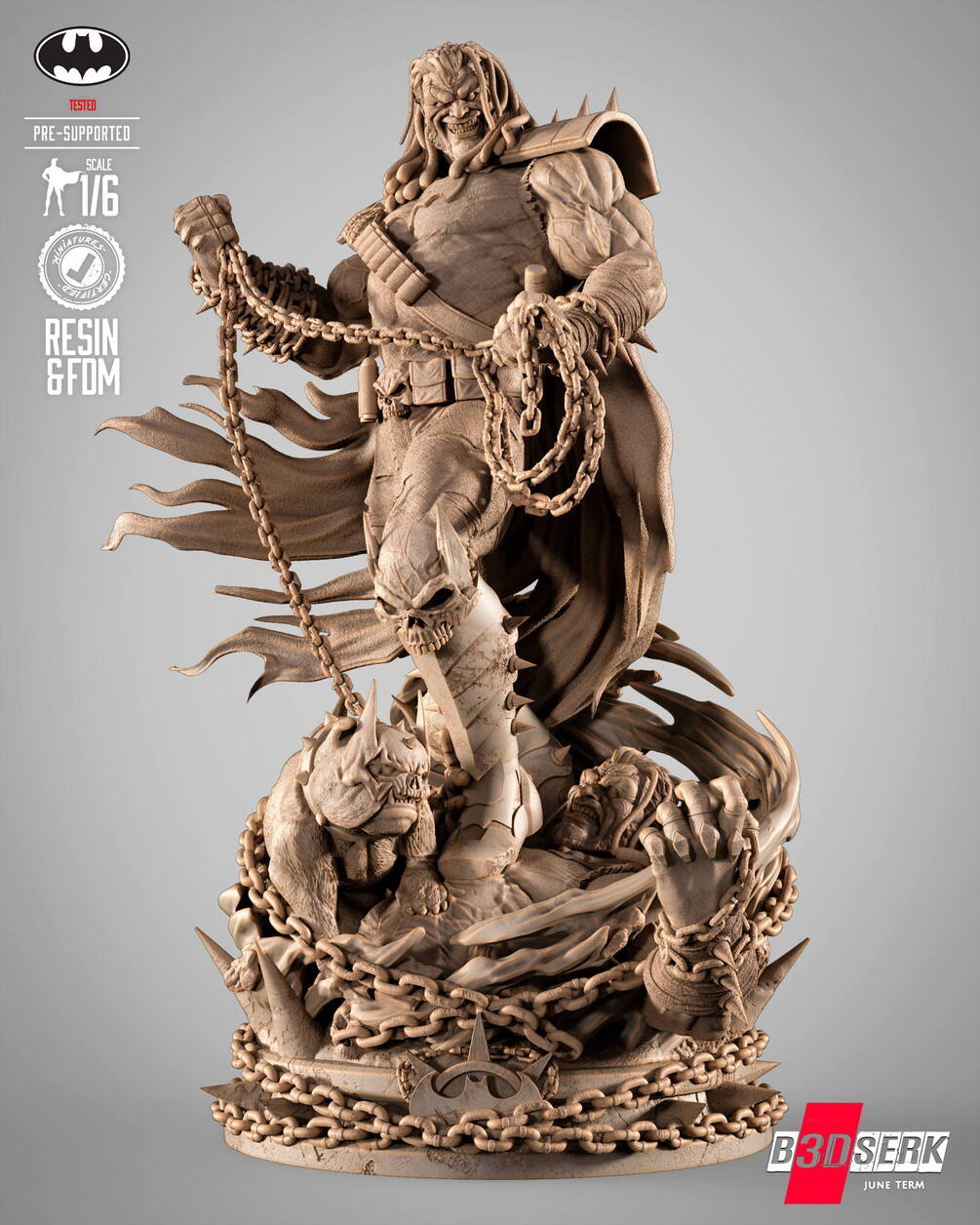 We bring you Batman Who Frags Sculpture Pre - Supported and Non - Supported version for 3D printing.