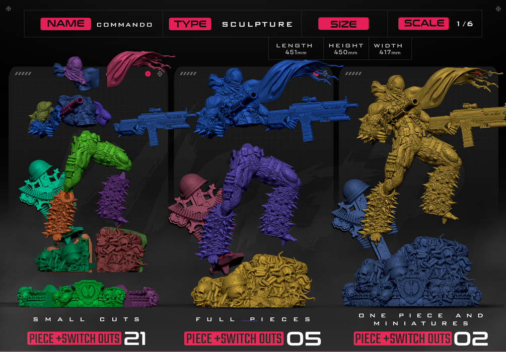 Commando Spawn Sculpture: Non Supported, Pre - Supported and One Pieces version.