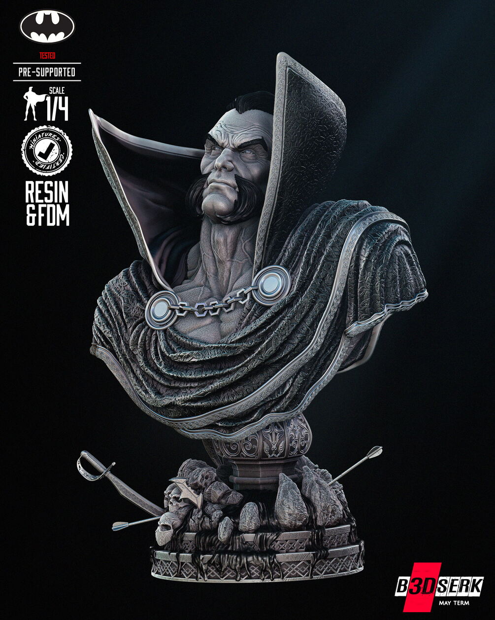We bring you Ra's Al Ghul Bust Portrait Pre - supported and Non - Supported version for 3D printing.