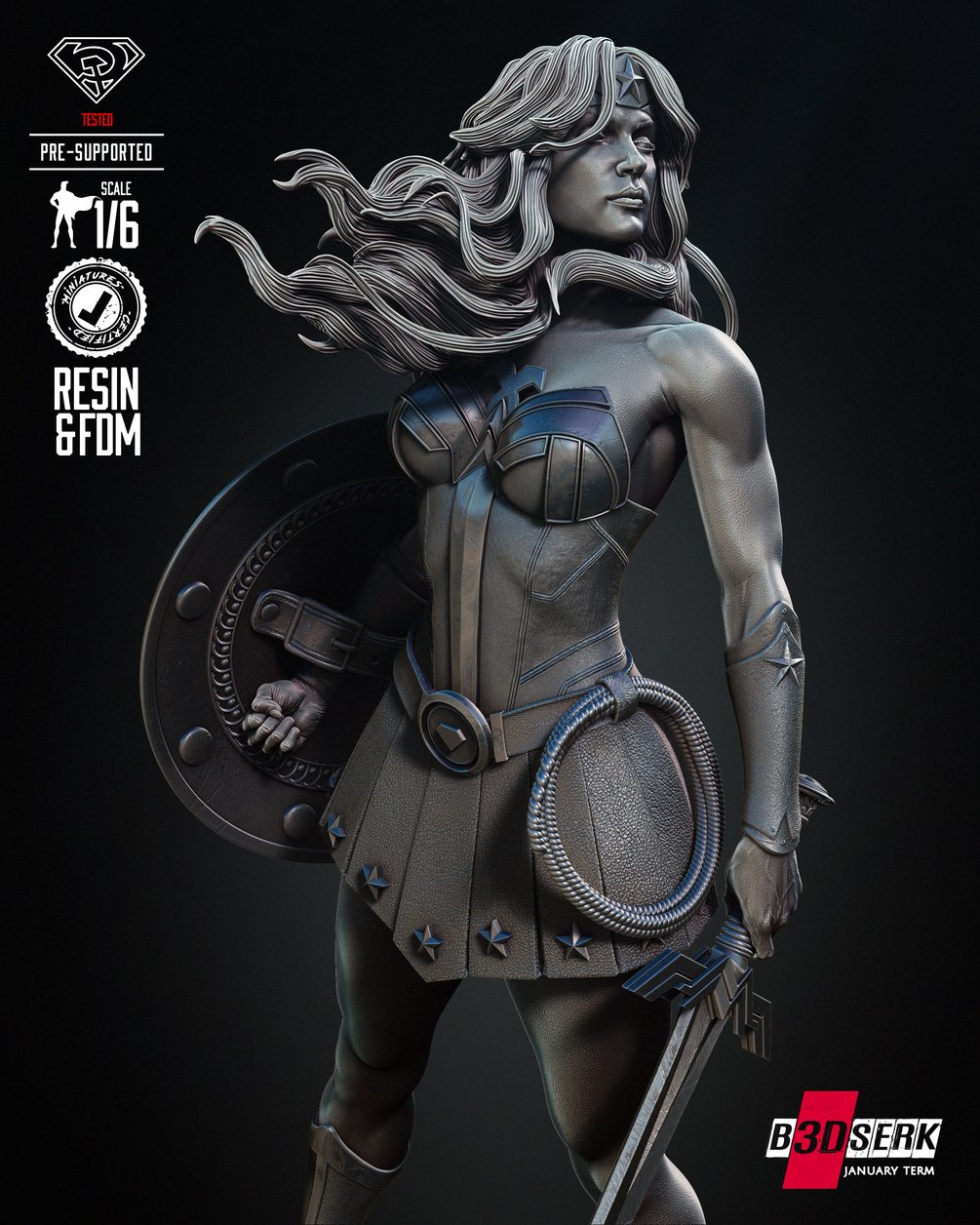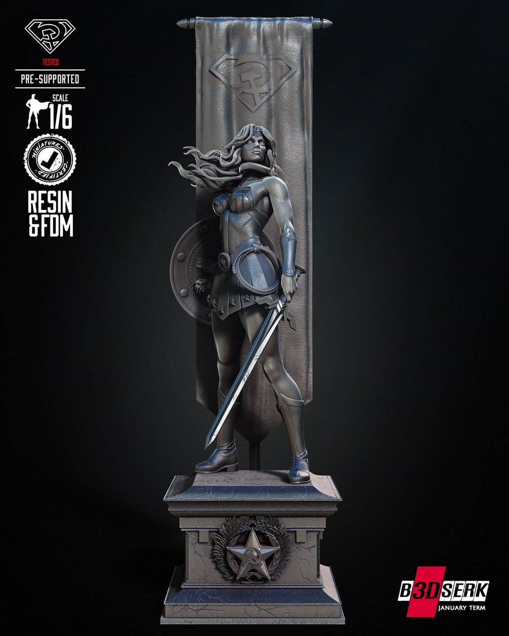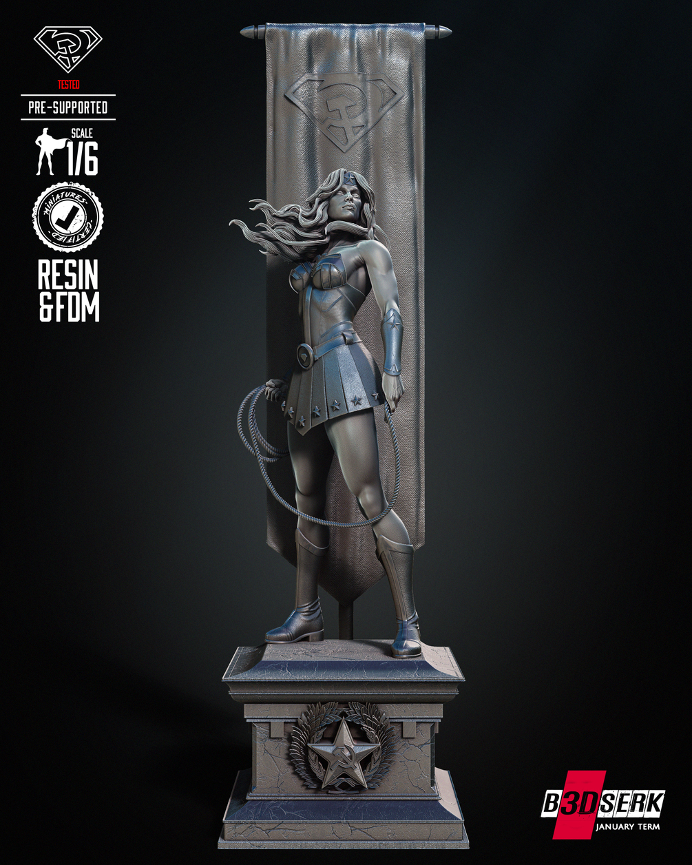 B3DSERK January term 2024: Red Son Wonder Woman Sculpture ready for printing