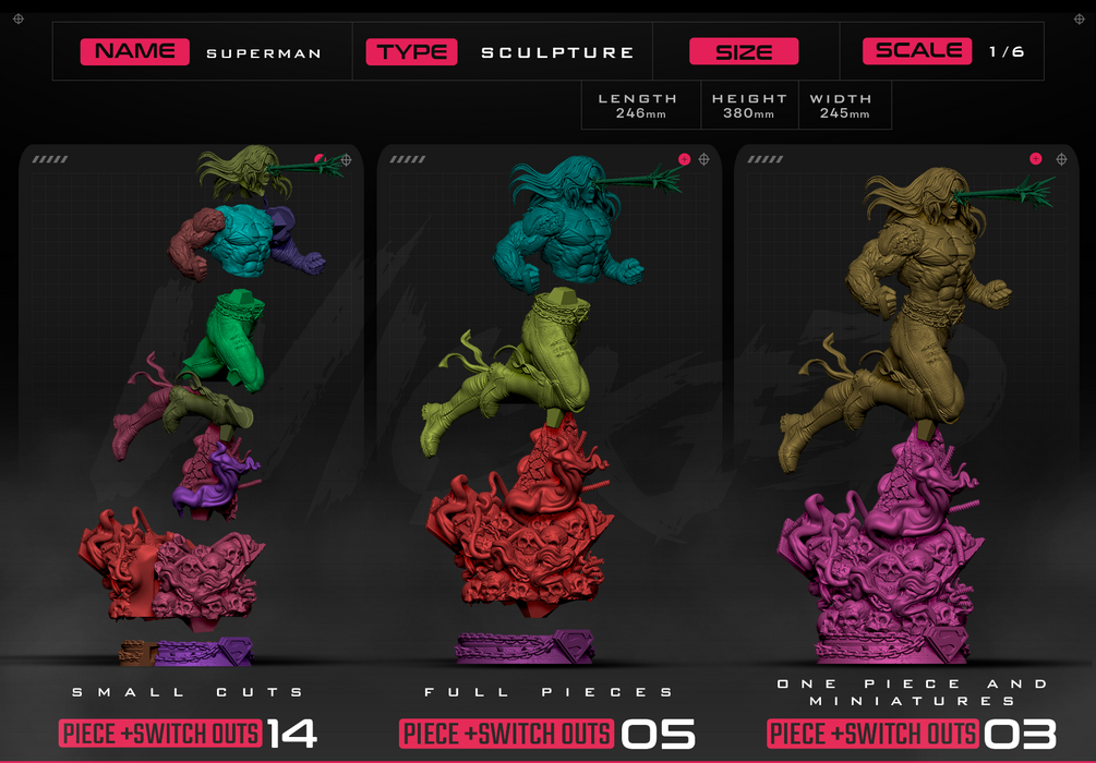 We bring you Superman Long Hair Dark Nights Sculpture Pre - Supported and Non - Supported version for 3D printing.