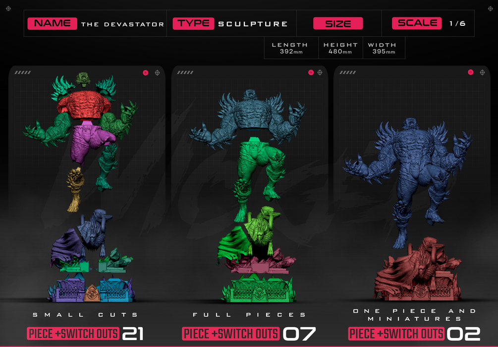 We bring you The Devastator Sculpture Pre - Supported and Non - Supported version for 3D printing.