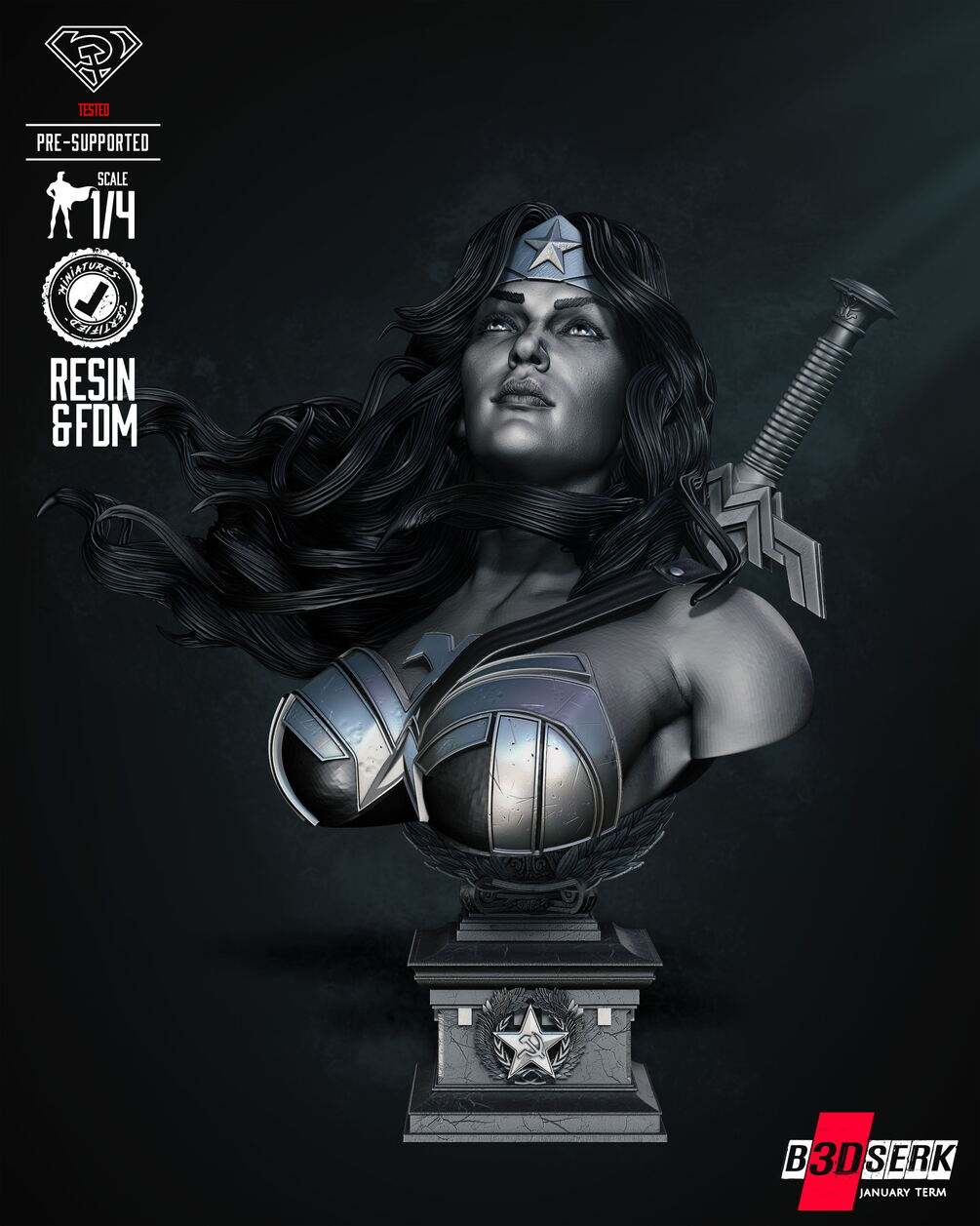 B3DSERK January term 2024: Red Son Wonder Woman Bust Portrait ready for printing